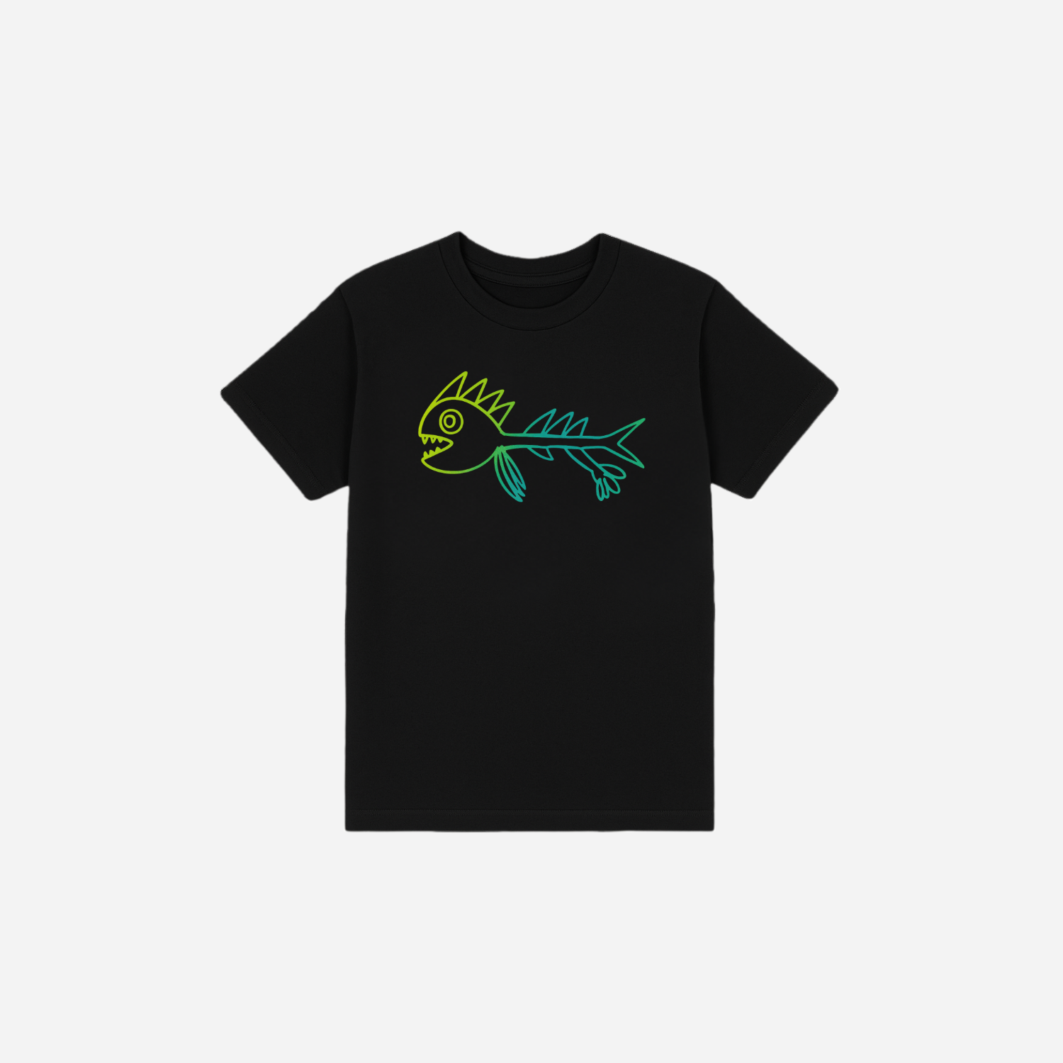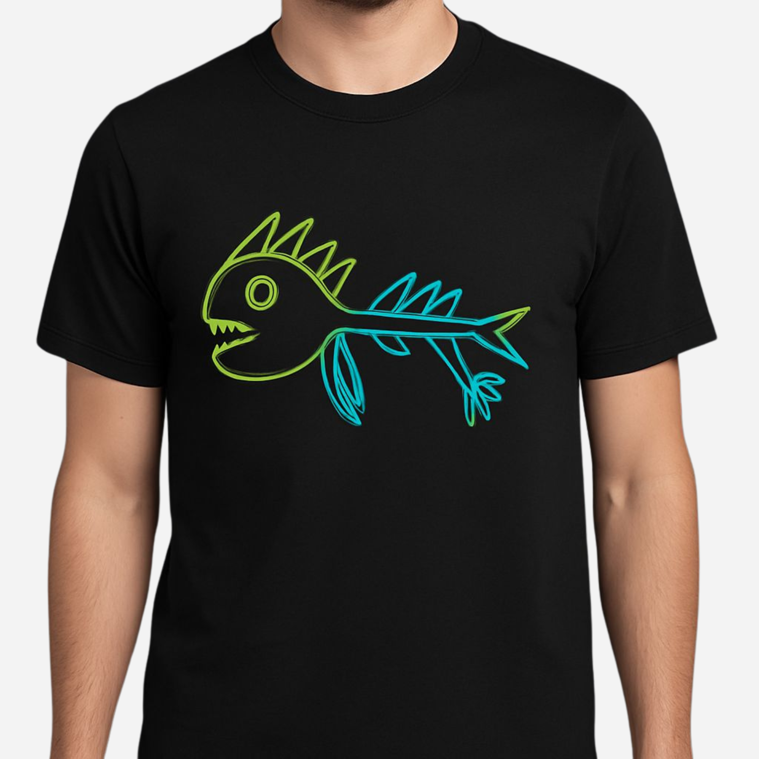 Say hello to the Glow bone Fish – a glowing, grinning deep-sea doodle straight from Finley's sketchbook! This bold, hand-drawn fish skeleton pops with neon energy, making it a standout tee for anyone who loves fun, quirky design. Imagined by our son, worn by everyone.